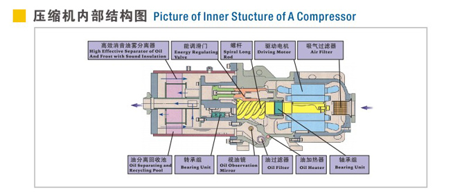 Compressor adopts international brand (than hazel - BITZER Germany, Taiwan han zhong - HANBELL, etc.), new type of high efficient screw rotary compressor, 20% to 30% higher than general compressor efficiency, patented in Europe and the United Nations and the IS9001 international quality certification.